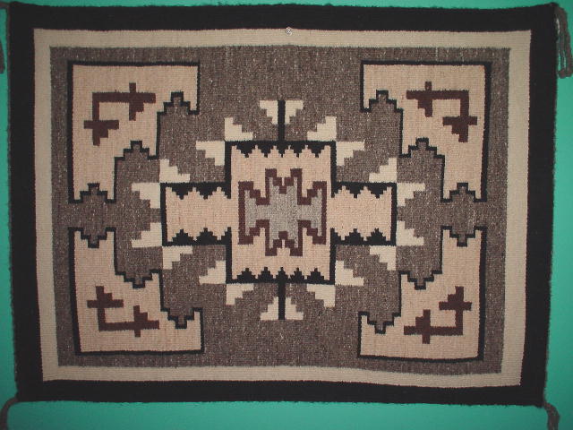 Another Two Grey Hills rug. It is smaller but has a very tight weave. More threads per inch results in finer detail.